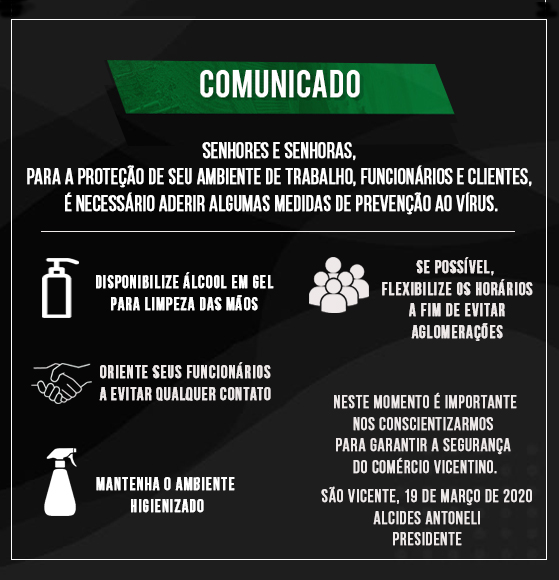 Associação Comercial de São Vicente dá dicas para previnir o comércio do vírus